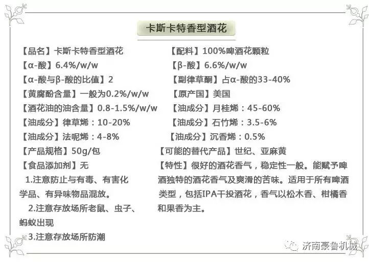 下面是该啤酒花的技术参数,专供精酿啤酒设备使用